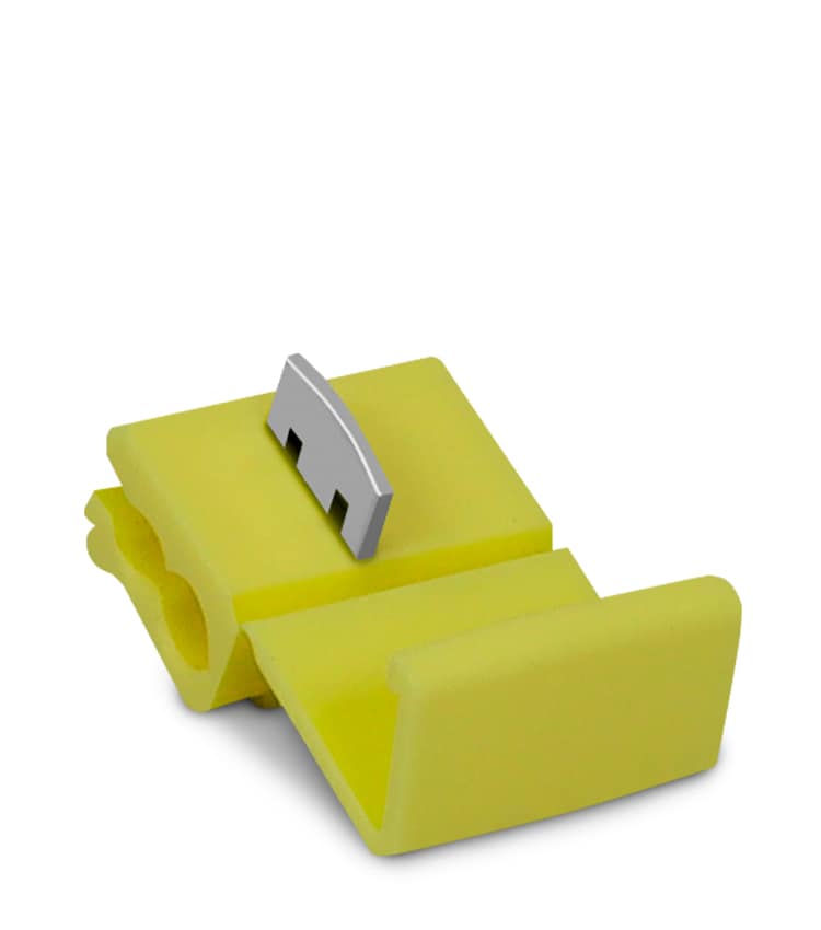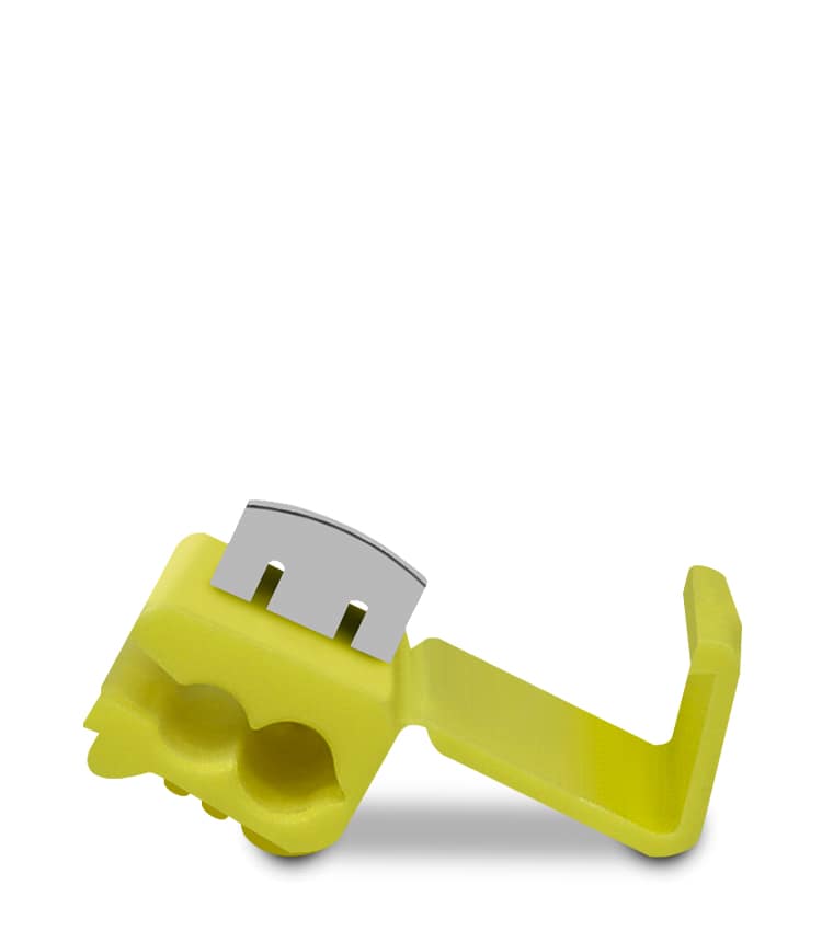 O Conector de derivação possui uma lâmina que remove a capa isolante dos fios. Os fios se conectam através da própria lâmina e são isolados através do corpo de polietileno com aditivação anti-chama. A remoção da capa isolante pelo próprio conector que reduz o tempo de aplicação, aumentando a produtividade dos instaladores.