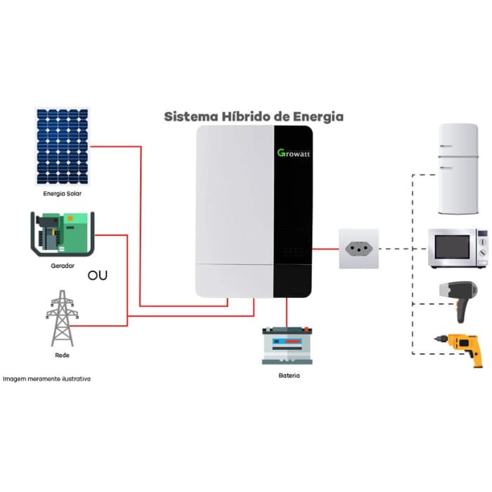 Kit Energia Solar Hibrido Off Grid 3000w Growatt + Bateria Moura