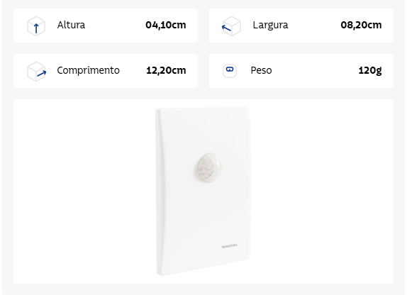 Para garantir praticidade e segurança para as pessoas que circulam pelos seus ambientes, conte com o sensor de presença 120° de embutir em parede Tramontina bivolt com fotocélula branco. Ideal para corredores, halls de elevadores, escadas, garagens e outros espaços com circulação de pessoas, ele comanda o acionamento da iluminação por um tempo determinado, conforme seus temporizadores, que são de 5 segundos, 1 minuto, 5 minutos e 8 minutos, tendo alcance de até 9 metros em 120 graus. Um item Tramontina de parede e de embutir, que leva funcionalidade para o dia a dia e auxilia na economia de energia!Para garantir praticidade e segurança para as pessoas que circulam pelos seus ambientes, conte com o sensor de presença 120° de embutir em parede Tramontina bivolt com fotocélula branco. Ideal para corredores, halls de elevadores, escadas, garagens e outros espaços com circulação de pessoas, ele comanda o acionamento da iluminação por um tempo determinado, conforme seus temporizadores, que são de 5 segundos, 1 minuto, 5 minutos e 8 minutos, tendo alcance de até 9 metros em 120 graus. Um item Tramontina de parede e de embutir, que leva funcionalidade para o dia a dia e auxilia na economia de energia!